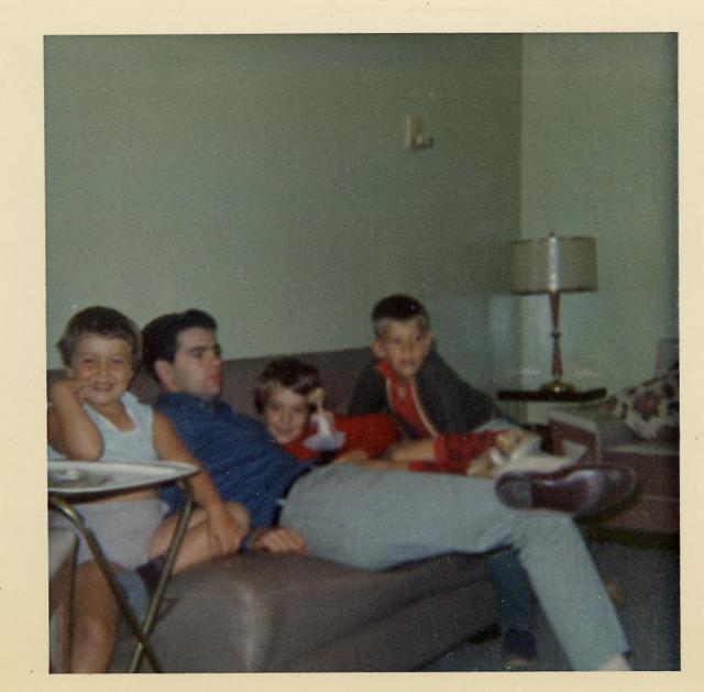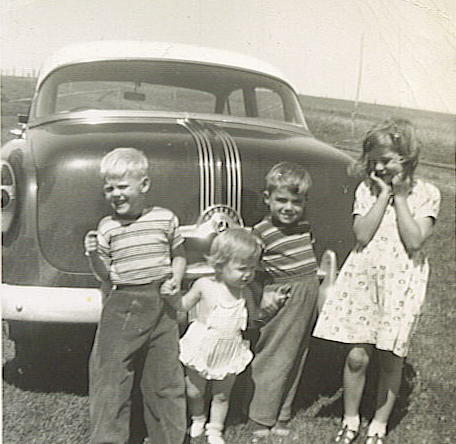 Picture was taken in October, 1941 on the day Uncle Donald was leaving for overseas. He is standing with his sister Margie (my mother) and in the background are Lawrence and Annie.